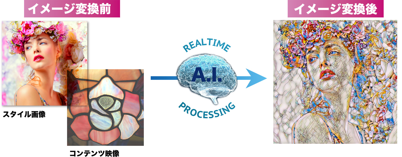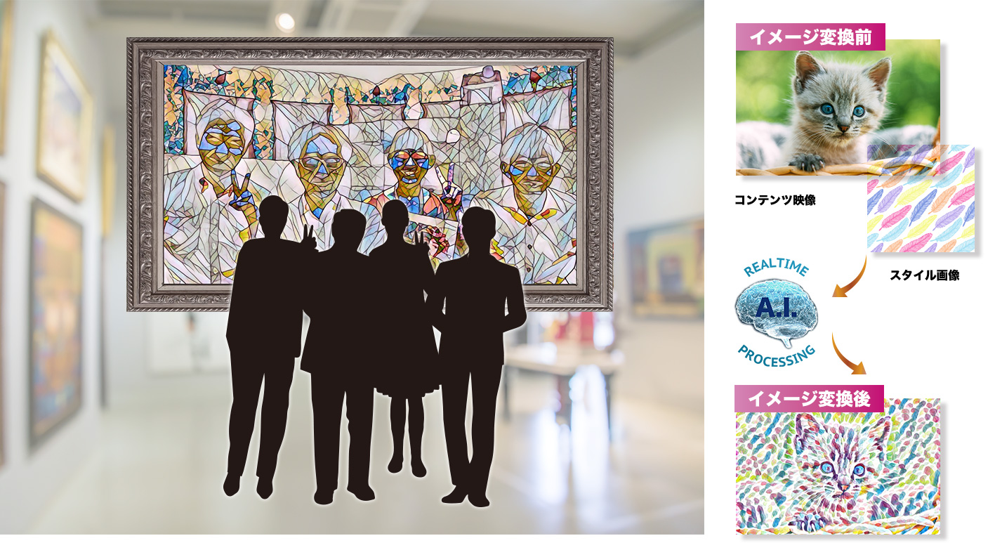 A.I.G.A.利用獨創的A.I.技術,將畫像中的色調、筆觸、氛圍等繪畫的形象反映在攝影機鏡頭前的人物身上。 為您提供彷彿置身於各種名畫中的全新體驗。