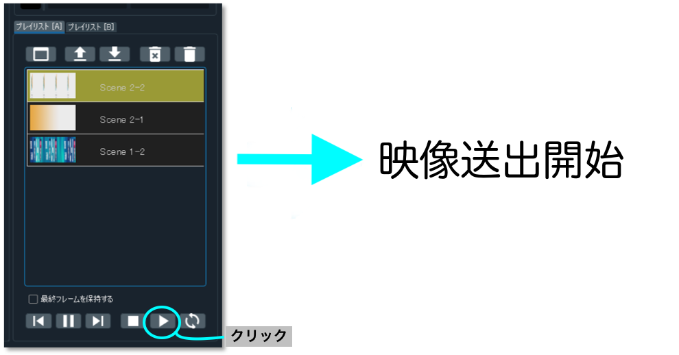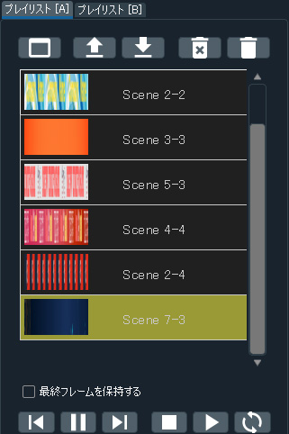 可以創建播放列表進行連續的內容播放。 從"場景"中拖放內容並創建播放列表以保持內容運行。 播放列表具有簡單循環播放功能,並保留播放列表的最後一幀以避免黑屏。 高功能性和快速支持即時操作是使用AZ-LED-MAPPER的最大好處之一。